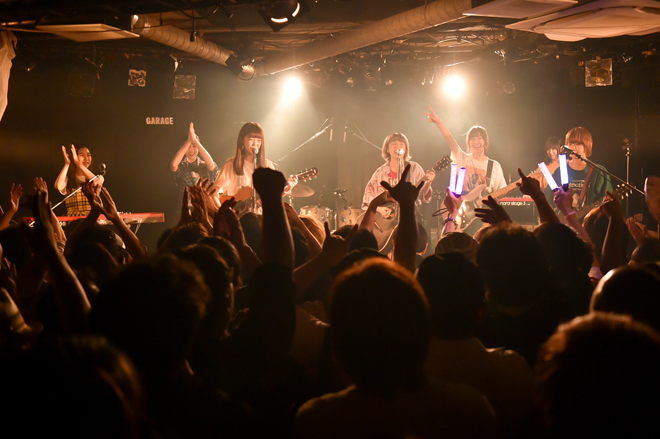 続く表題曲選抜メンバーは一転して落ち着いたムードで、メンバー全員でドラムの森ふた葉の方を向いて息を合わせて、表題曲「憂鬱な空が好きなんだ」でライブをスタート。ボーカルの松本璃奈は観客にクラップを煽る余裕も見せるなど、聴かせるパートと観客と一緒に盛り上がりたいパートが明確。メリハリのついたステージングで、エレキギターの手塚愛乃のコーラスや、HANNAのギターソロ、エレピとオルガンの色彩の違いなど、各メンバーの個性も際立っており、楽器を演奏しながらのバンドメンバー紹介もスムーズ。プロジェクト最初の選抜メンバーに選ばれ、レコーディングやMV撮影、数多くの取材などを、数多くの現場を共に経験してきた絆の強さと自信のようなものを感じせるステージとなっていた。