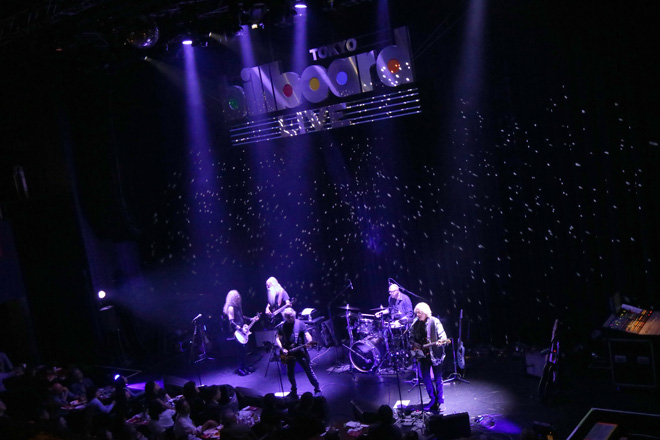 そして昨年アンコールで大いに盛り上がった「Cruel Twist」がこの日は11曲目で登場。思わず踊りだしたくなるご機嫌なナンバー!ヴォーカルはダニー。彼が20年くらい前に作り、昨年リリースのアルバム『HDLLA』で初登場した。アップ・テンポのこの曲の見せ所は強いビートに任せて3人のギタリストが順にソロを弾きまくるところだ、ダニーからスティーヴ、そしてワディと…堪らない!『LIJ』にも収録。