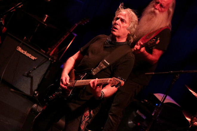 “ドウモ アリガトウ。次はジェームス・テイラーの曲だけど彼との違いをチェック・イット・アウト”というダニーのMCから5曲目「Machine Gun Kelly」へと続く。ダニー在籍のジョー・ママが70年に発表。翌年にジェームスが『Mud Slide Slim And The Blue Horizon』でカバーした。禁酒法時代のギャング、マシンガン・ケリーを歌っている。ダニーのヴォーカルがオーディエンスを魅きつける。そしてワディのスライド・ギターにも見事だ。ラスの重いリズムにリーの唸りを上げるベース、そこへ切れ込むワディのギター、大きく盛り上がる素晴らしいステージングに爺は拍手。アルバム『HDLLA』『LIJ』収録。