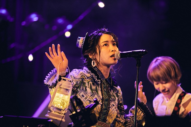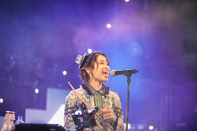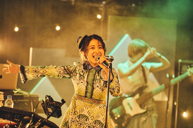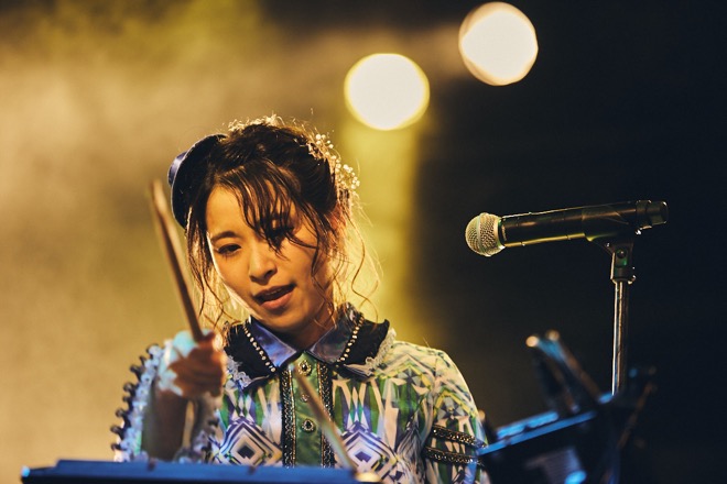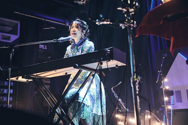 ミニアルバム1曲目に収録の「BURE-NIGHT-MAGIC」からライブがスタート。「オンドラムス、わたし!」とドラムスティックを手にするAMI、間奏で高速ドラムソロを披露し、早くも会場の熱気は最高潮へ。続く「YUME UTSUTSU」でも軽快なドラムに2本のサックス、流麗なピアノが心を躍らす。観客も難度の高いリズムの手拍子にコール&レスポンスにとバンドメンバーの一員として演奏に参加。見事な一体感を見せた。