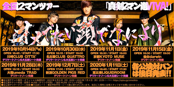 オメでたい頭でなにより主催の<真剣2マン遊VIVA!>は、2018年にも開催された全国2マンツアーシリーズ。今回は2019年10月14日(月・祝)川崎CLUB CITTA’を皮切りに、全国7公演での開催が決定。