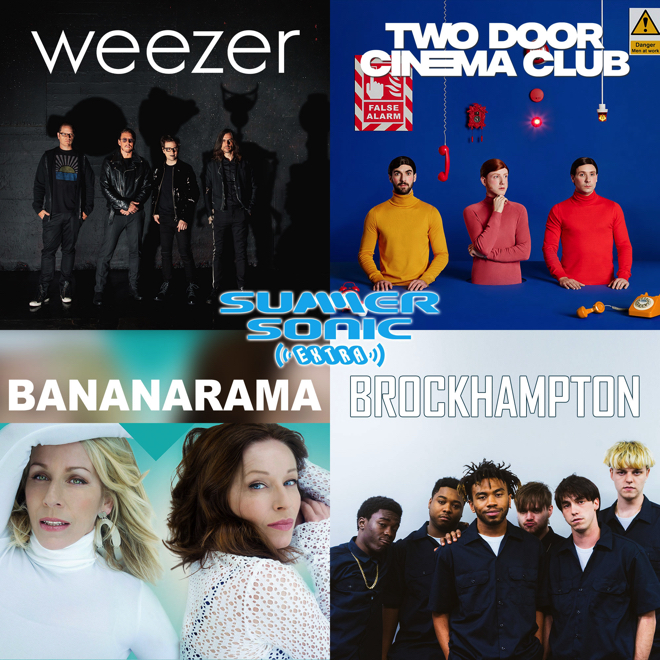 今回の発表では、8月14日(水)にウィーザー、8月15日(木)にトゥー・ドア・シネマ・クラブ、バナナラマ、ブロックハンプトンの単独公演が行なわれることが明らかになっている。トゥー・ドア・シネマ・クラブの公演には、サポート・アクトとしてサーカ・ウェーヴスが出演する。各公演の詳細は以下の通り。