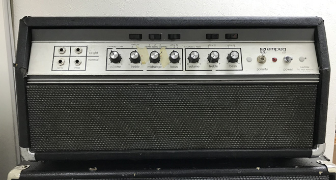 鈴木研一:そうなんです。ライブでは使わないから真空管も変えてないんですよ。あまりにも音が大きすぎてライブでは使いづらいので、ライブでは同じAmpegのV-4Bってのを使ってます。これもまた、自分が大好きなシン・リジィのフィル・ライノットが使ってて、これだなと。