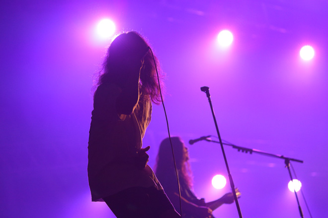 ギターのフィードバック・サウンドが徐々に大きくなるなか、薄紫色のライトでシルエット状に浮かび上がるメンバー。その音に酔うように茂木洋晃がゆっくりとステージに現れた。ストールのような布を頭からかぶったその姿は、シャーマンのようなオーラさえ漂わせる。固唾をのんで見守るオーディエンスに向け、茂木はつぶやくように語り始めた。今から始まるステージに向けた意志を、自らにも言い聞かすように。
