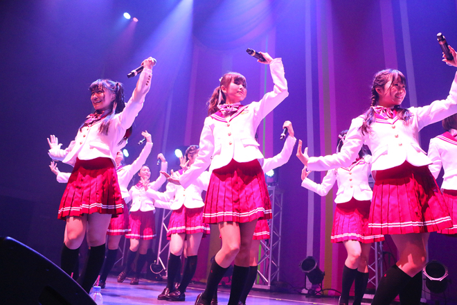 今年1月に、2010年の結成当初からのメンバーを含む浅川梨奈、溝手るか、宮崎理奈、渡邉ひかる、内村莉彩の5名が卒業し、新メンバーオーディション合格者の4期メンバーを迎えたSUPER☆GiRLS。この日は11名体制第4章になってから、初の結成日記念ワンマンライブであった。