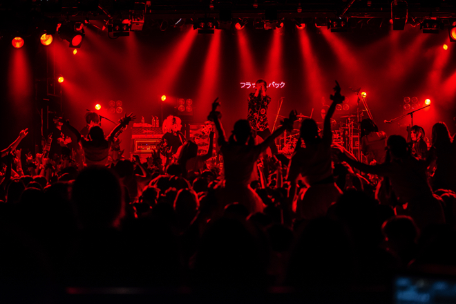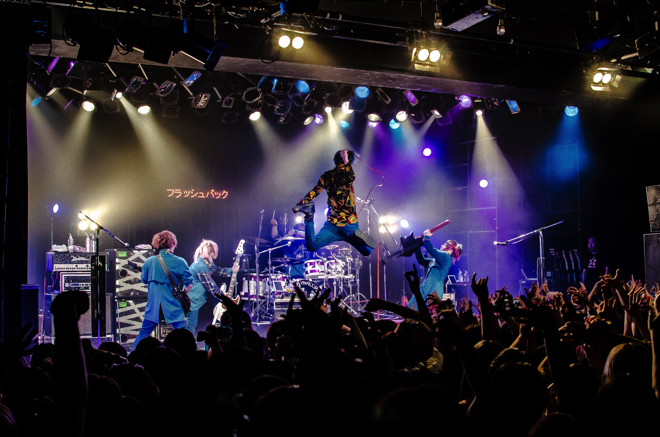 あれから7年の時を経て、彼らはバンドとして見事に大化けしてくれた。だからこそ、この場所を選んで<フラッシュバック御礼暴行>ツアーファイナルをやったことは非常に価値があったと思う。冒頭を飾った新曲の「フラッシュバック」から場内の熱量は高く、メンバーとファンがいかにライヴが好きかということが観ていて伝わってくる。