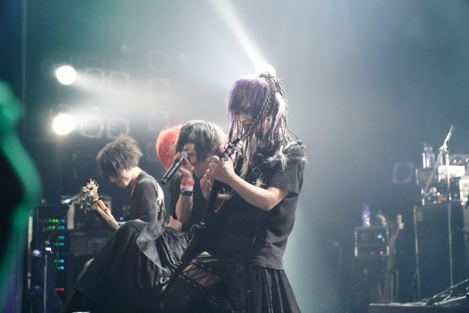 今年1月に氷龍(G)と憂璃(B)が加入して新体制となった彼らにとって、今回の音源リリースとツアーが重要な意味を持っていたことは言うまでもない。ここで、よりパワーアップした姿を見せることで、いい波に乗って以降の活動に向かっていけるからだ。そんな中6月も後半に入り、6月21日にツアーファイナルを飾る公演がヴァージュ史上最大規模となるTSUTAYA O-WESTで行われた。
