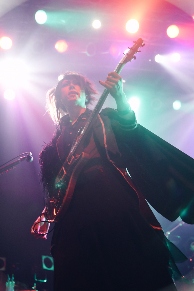 或のパワフルなドラムソロと楽器隊によるインストゥルメンタル・セッションを挟んで、「Angraecum」からライブは後半へ。「かくれんぼ」や「毒苺」「醜劣」といったハイボルテージなナンバーが相次いで演奏された。ハードモードに再びシフトして、フィジカルなパフォーマンスを展開しながら重厚かつスリリングなサウンドを叩きつけてくるメンバー達。攻撃的なヴァージュに応えてオーディエンスも怒涛のリアクションを見せ、場内は熱狂的な盛りあがりとなった。