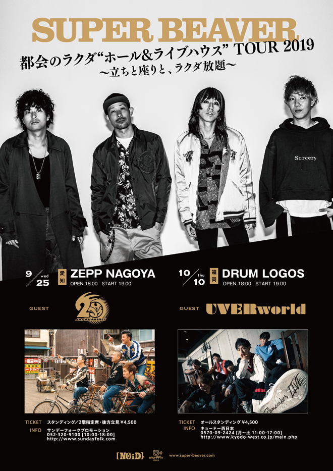 SUPER BEAVERツアーにジャパハリネットUVERworld出演