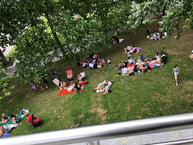 パリは日曜日で休日だったからピクニックを楽しんでる人が公園にはたくさんいて、