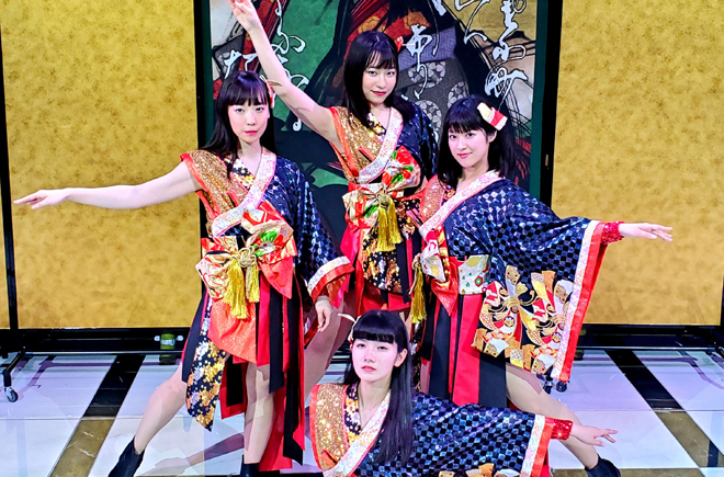 小野小町は、小西麗菜、福島彩菜、坂中楓、山川紗希の女性4人によるユニットで、歌やダンスはもちろん、日舞や、殺陣、太鼓、さらにはイリュージョンをステージで披露する新感覚のエンターテイメント集団。名古屋を中心に活動していたメンバーで結成された。