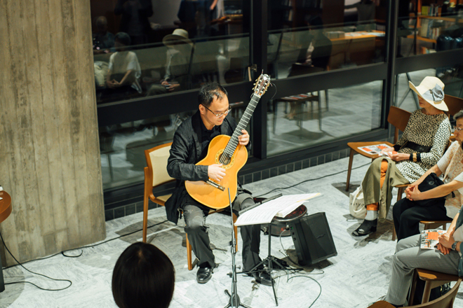 ライブでは、タン・ドゥンのことを高く評価していた日本人作曲家の武満徹の編曲による「イエスタディ」「オーバー・ザ・レインボー」「シークレット・ラヴ」などを惜しげも無く披露。夏の訪れを感じさせる京都岡崎の夜、美しいクラシックギターの音色、至極の演奏に、酔いしれたひとときだった。