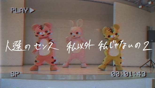 そして正午には人選のセンスのYouTubeチャンネルにて、「私以外私じゃないの2」のミュージックビデオが公開された。この映像にグループの全貌を少しでも探るヒントがあるのではと期待させたが、流れ出したのはアナログビデオ録画されたような映像。太陽の光が降り注ぐ、人もまばらなデパートの屋上に設置されたステージで「私以外私じゃないの2」の音にあわせて2体の虎の着ぐるみが踊っている。途中から、1体のウサギの着ぐるみがステージに登場したが、他の2体ほど上手く踊れず苦戦しているようである。グループの謎を解くヒントが、映像のどこかに隠されていたのだろうか?