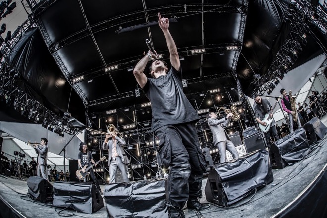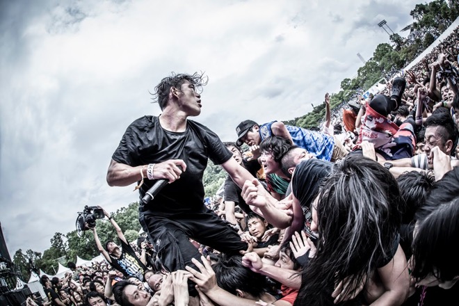 覚醒に次ぐ覚醒のステージだったが、そのエンディングを締めくくるように広がったのは「鼎の問」。でかいメロディを持ったこの曲では、過激さとは違った、味わいある歌を聴かせるTOSHI-LOW。人生も経験も重ねたからこその人間味溢れる歌が心を打つ。太陽が丘を埋め尽くすオーディエンスは、両腕を上げながら歌に聴き入った。