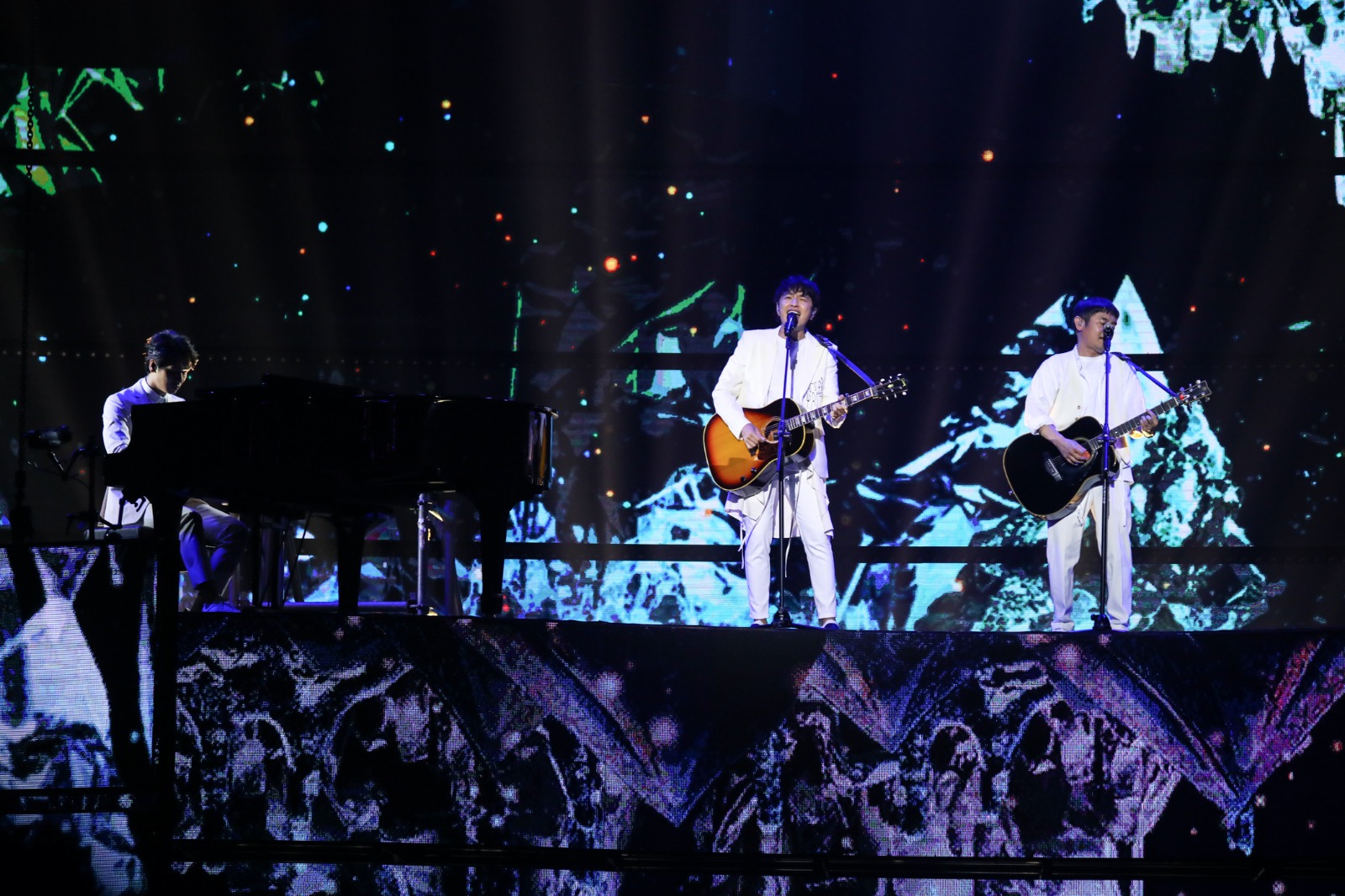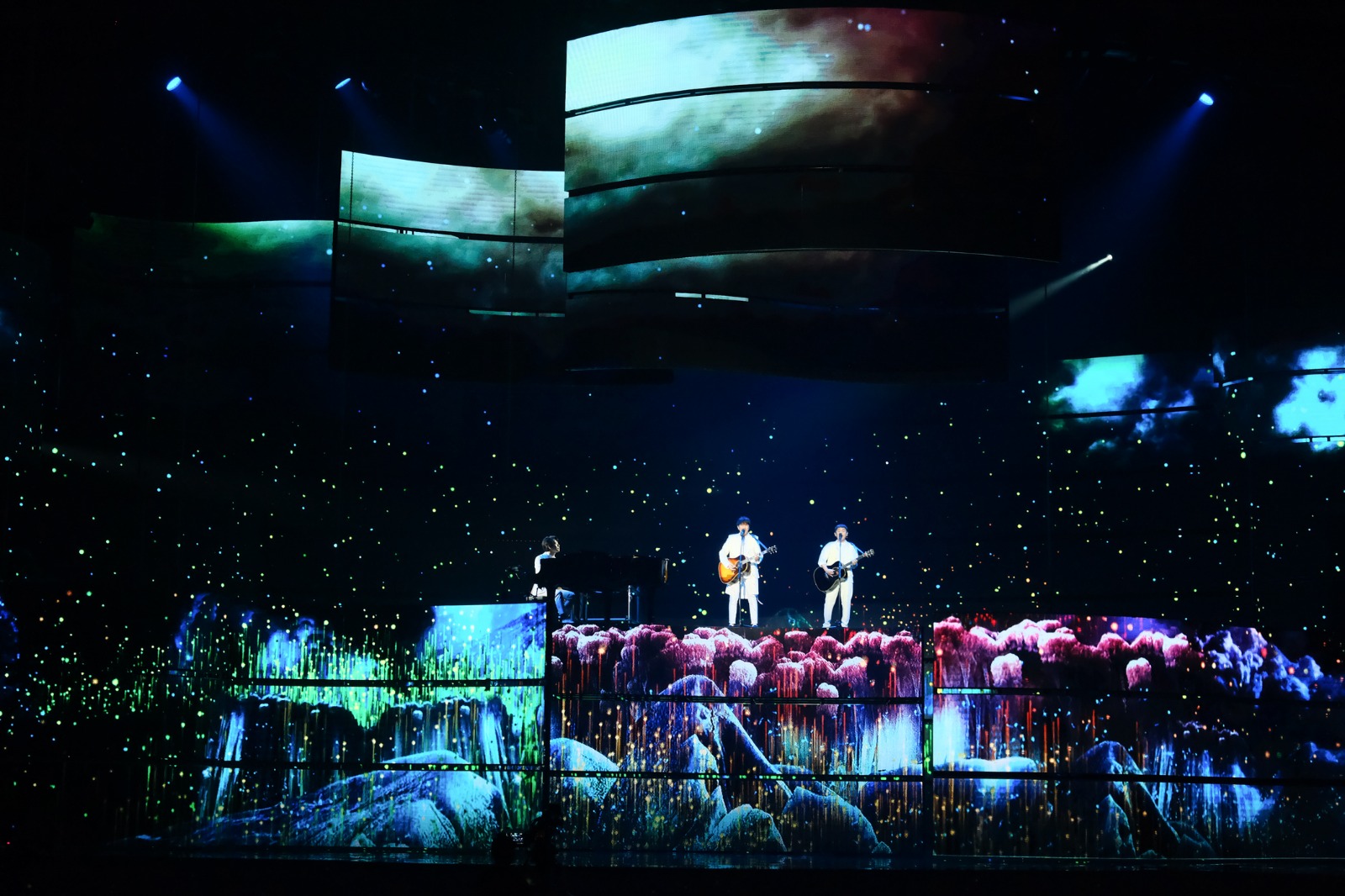 ゆずは夕刻からスタートしたレッドカーペットに登場し、数多くのカメラのフラッシュを浴びながら中国語で挨拶。その後、台湾時間の19時に授賞式がスタート。アジア各国のスターがノミネートされ、表彰&ゲストアクトを行う中、終盤に差し掛かったところでゆずが登場。きらびやかなLEDが施された特別セットに立ち、台湾の人気シンガーソングライター・蔡旻佑のピアノ演奏とともに、「栄光の架橋」を歌唱。アリーナ全体にゆずの歌声を響かせ、観客から多くの拍手喝采を浴びた。