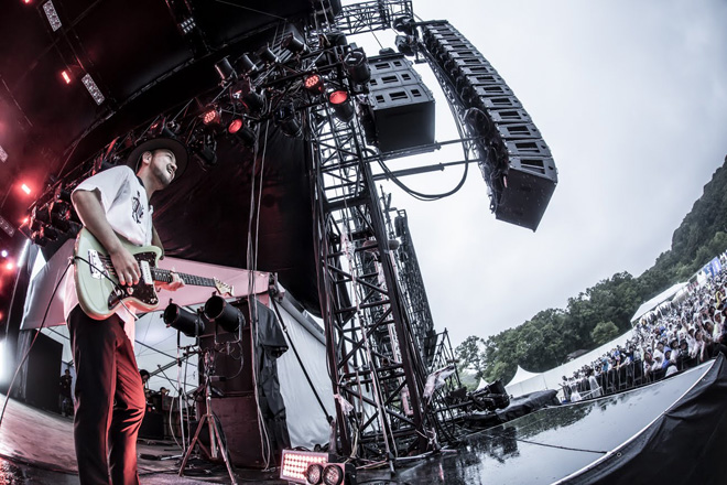 強めの雨が降りはじめた午後1時すぎ、SEはなしで、歓声と拍手と雨音に迎えられて登場したのは、<京都大作戦>初登場のクリープハイプだ。