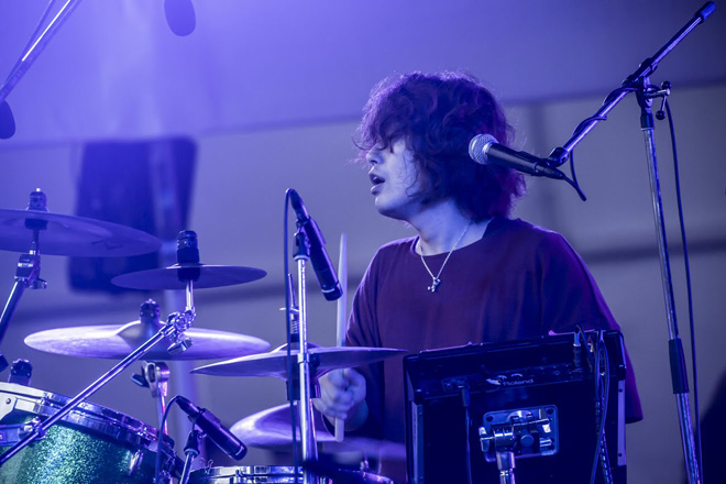 「今週は、いろいろとお騒がせしました」と最近の週刊誌での報道に触れて、「できればライブの方も騒がせたいと思ってます。ちょうど雨でいい具合に濡れていると思うので、セックスの歌からはじめたいと思います」と、フロントマン・尾崎世界観の自虐も交えた挨拶をしてスタートした曲は、「HE IS MINE」。