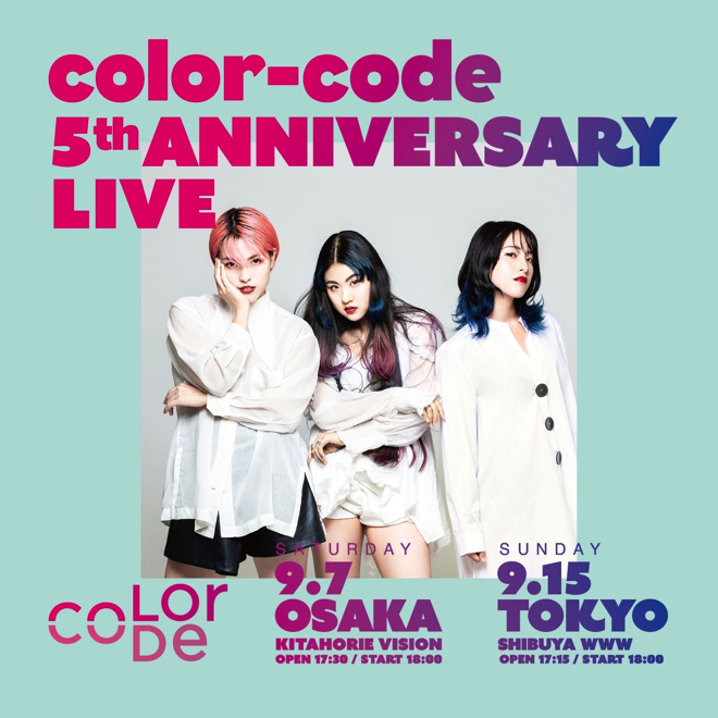 また、9月7日からは東京・大阪にて、color-code 5周年を記念したワンマンライブ<color-code 5th Anniversary LIVE>の開催も決まっている。チケットは現在一般販売受付中。さらに7月21日に浅草ROXにて、観覧無料のインストアライブを行うことも決定している。