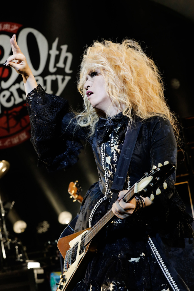 まだまだ熱気の渦巻く中野サンプラザ。アンコールに応えて、筋肉少女帯のターニング・ポイントとなった「元祖 高木ブー伝説」を轟かせると、観客は声を限りに叫び出す。最後の最後は「釈迦」とデビュー・アルバムのオープニング・ナンバー「モーレツア太郎」というバツグンの景気の良さを誇る楽曲を畳みかけ、祝祭の日を終えた筋少。橘高がフライングVを破壊し、積み上げられたマーシャル・アンプの壁に投げつけると、30周年を祝うバックドロップは爆音とともに31周年を祝うものへと早変わりしていた。