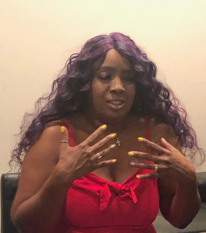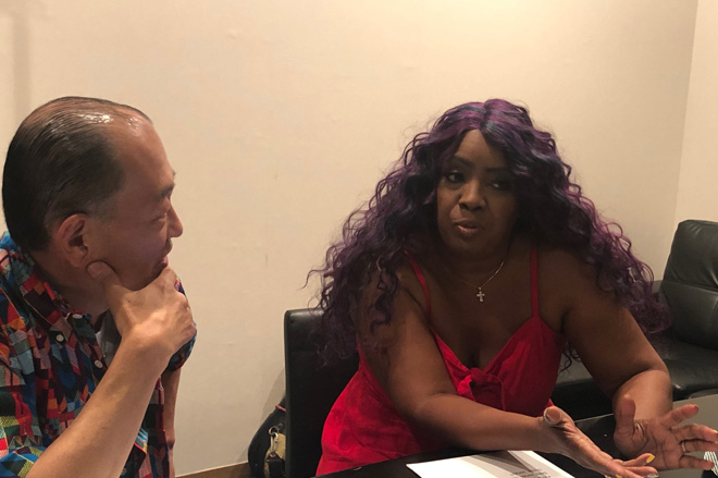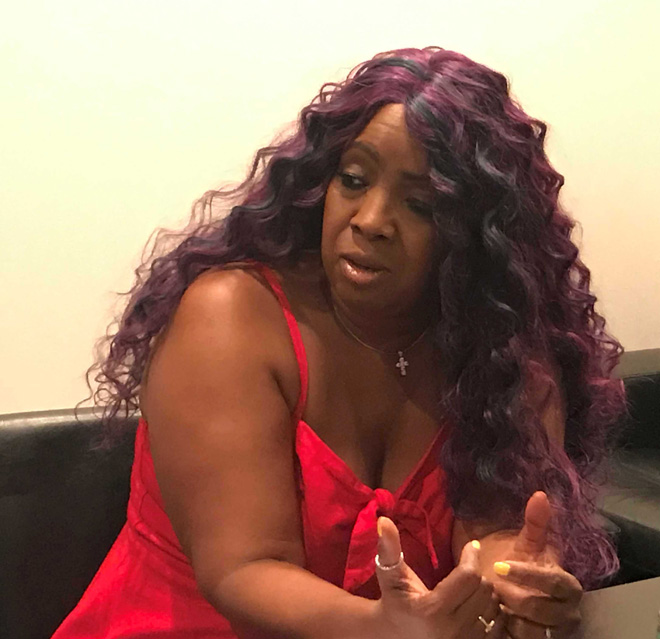 A:正式には参加しなかったのよ。14歳よりもう少し年上だったんだけどね、その頃フレッド・ペトラスがニューヨークに来て、多くのミュージシャンと仕事し始めたのね、チェンジとかルーサー・ヴァンドロスとか。彼は私とデートしたがったの。その時私をどこかのグループに参加させるって言ったの。ちょっとだけB.B.Q.とツアーに出て、その後80年代に入ってからだけどシェイズ・オブ・ラヴに参加したの。その当時、私は高校を卒業してチェイス・マンハッタン銀行で働いていたの。臨時雇いのセクレタリー。でも結構いい給料を貰ってて時給10ドルだったワ。銀行で働きながらバック・コーラスとしても活動。ジョスリン・ブラウンとか、その他にも有名なハウス・ミュージックのアーティストとかのバックで歌ってたの。で、シェイズ・オブ・ラヴの「Body 2 Body」っていう曲のバック・シンガーの仕事が来たの。スタジオに行ってバック・パートをレコーディング。でもリード・シンガーが来なかったのヨ。それならとその場の雰囲気で私がリードも歌わされたの。バックで50ドル、リードで75ドル、合計125ドル頂いたわ。2週間後には私の歌った「Body 2 Body」がラジオから流れ始め、ついにはダンス・ソング1位に輝いたの!骨の折れる歌だったわ(またまたその場で歌う♫)、時にはこういうのもやったの。