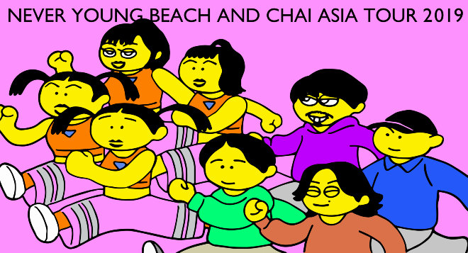 never young beachが、CHAIとのアジアツアー<NEVER YOUNG BEACH AND CHAI ASIA TOUR 2019>の開催を発表した。