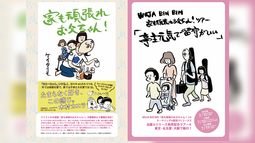元BEAT CRUSADERSのケイタイモ主宰による13人編成のプログレ吹奏楽団WUJA BIN BINが、6月に出版したケイタイモ自身の漫画『家も頑張れお父ちゃん!』の書籍出版を記念して、同作テーマソング「family affair」を配信リリースすることが発表となった。