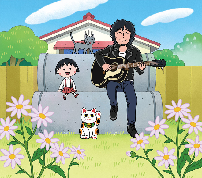 「斉藤和義 ✕ ちびまる子ちゃん」コラボ特製ステッカー3枚セット付き。