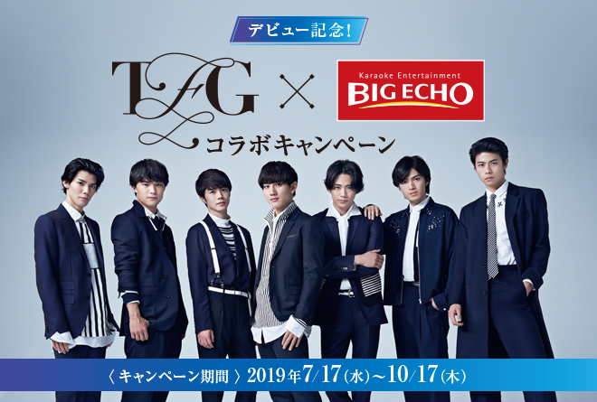 この7月17日のデビューを記念して同日より実施されるのが、<TFG×BIG ECHO コラボキャンペーン>。メンバーのビジュアルでラッピングされたTFGコラボルーム&おすすめメニュー(水道橋店限定)、メンバーサイン入りTシャツが当たる歌唱キャンペーン(全店で実施)など、ファン必見の内容でお届けする。