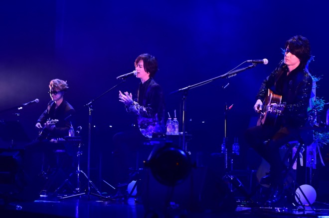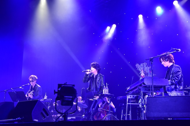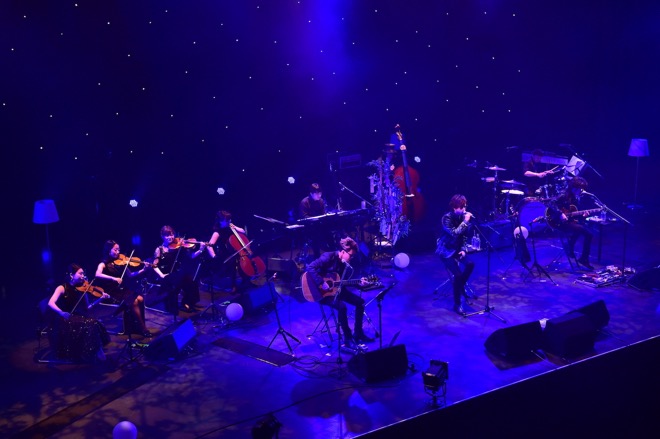 開演時刻の19時が過ぎ、それまでゆったりと流れていたジャジーなピアノのBGMがフェイドアウトすると共に場内が暗転。夜空に輝く満天の星を想起させるライトが煌めく中、童謡「七夕さま」のインストに乗ってサポートミュージシャン、SHINPEI、DAIGO、AKIHIDEの順にステージへ登場。満場となった客席から大きな拍手が沸き起こった。