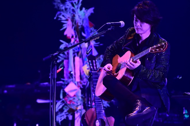 盛大な拍手に包まれた場内。AKIHIDEは、「僕らミュージシャンは音楽でしかお返しができないので、今日は新曲を持って来ました」と、この日のためにAKIHIDEが作詞作曲を手掛けた新曲「Milky Way」が届けられた。ワルツの心地よいリズムに乗って、七夕をテーマにした少しほろ苦くて、だけどハートウォーミングなナンバーに場内がじっくりと聴き入るよう。天の川(=Milky way)のごとくキラキラと輝く無数の星灯りが、その美しさを際立たせた。