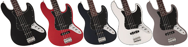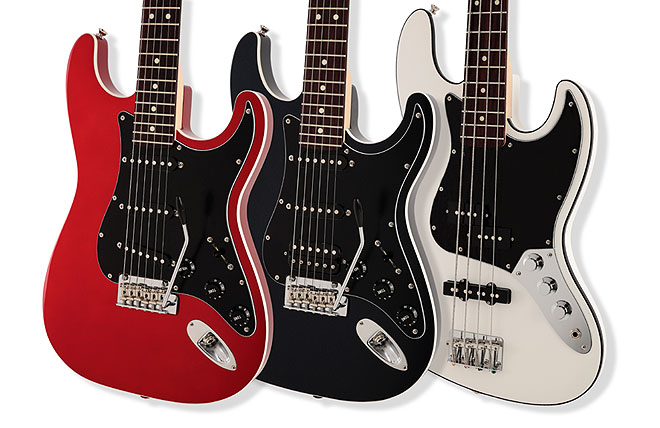 フィンガーボードはいずれもローズウッド。カラーはStratocasterの2モデルがBlack、Candy Apple Red、Gun Metal Blue、Arctic Whiteの4色。Jazz BassがDolphin Grayを加えた5色をラインナップする