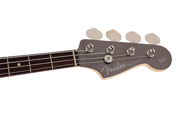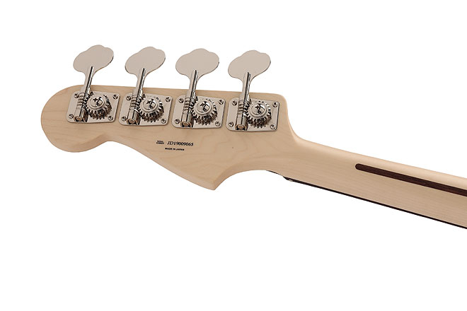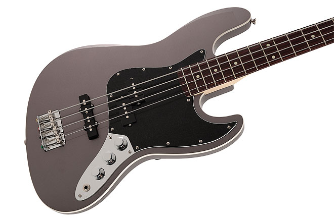 「Jazz Bass」モデルはブリッジピックアップにJazz Bassシングルコイル、ミドルピックアップにPrecision Bassスプリットコイルシングルコイルを搭載したPJ構成で、幅広いトーンと音楽スタイルに対応する。ボディはアルダーで9.5インチライジアスネックを採用。