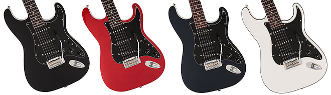 ▲Stratocaster、Stratocaster HSSともにBlack、Candy Apple Red、Gun Metal Blue、Arctic Whiteの4色を用意。