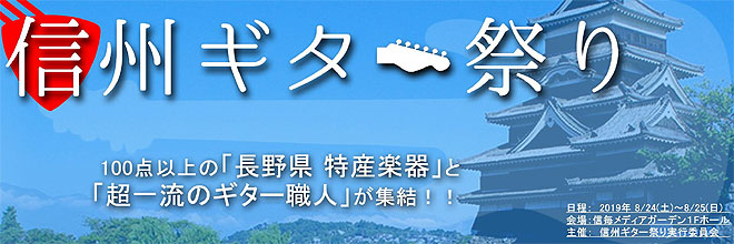 100点以上のエレキギター/ベースの展示やアーティストイベント、職人による楽器製作の実演などが行われる、楽器好きにはたまらないイベント<信州ギター祭り2019>が、8月24日(土)~25日(日)の2日間、長野県松本市の信毎メディアガーデンで開催される。