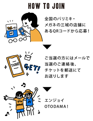 本キャンペーンでは、そんなOTODAMAイベントへ抽選で100組200名を招待する。申込みは全国のパリミキ/メガネの三城各店にて設置されたPOPのQRコードから誰でも応募が可能だ。8月9日開催の<TGC BEACH 2019>、8月11日開催の<浜辺夏祭り 2019>、8月26日開催の<渚のメモリーズ 2019>、8月27日開催の<MIURA HAMABE FES 2019>と、イベント・ライブごとに応募申込締切日が異なるので詳細はキャンペーンサイトにてご確認いただきたい。