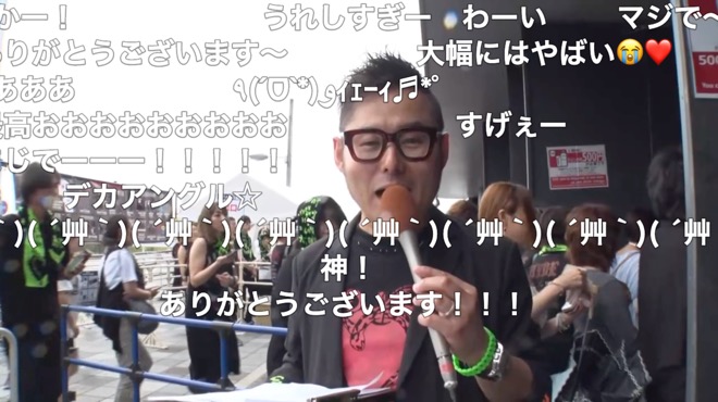 また、中継の移動中には埼玉県から遠征してきたという2人の女性ファンとも遭遇。本日の感想を聞かれた2人は、「熱くてカッコよくてぶっ放す感じ!」「ハジけられるから、いろいろ忘れられる!」とコメント。HYDEに向けて「これからもずっとついていくので、世界にぶっ放してください!」と応援の言葉を贈った。