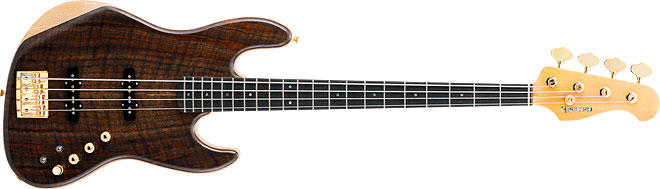 黒い縞模様が入ったスポルテッドメイプルをボディトップに用いたモデル。ボディバックとネックには貴重なホンジュラスマホガニーを採用。この材ならではの艶やかで膨らみのある中音域が魅力。出力を抑えたオリジナルピックアップは繊細かつ表現力豊かにピッキングニュアンスを再現する。