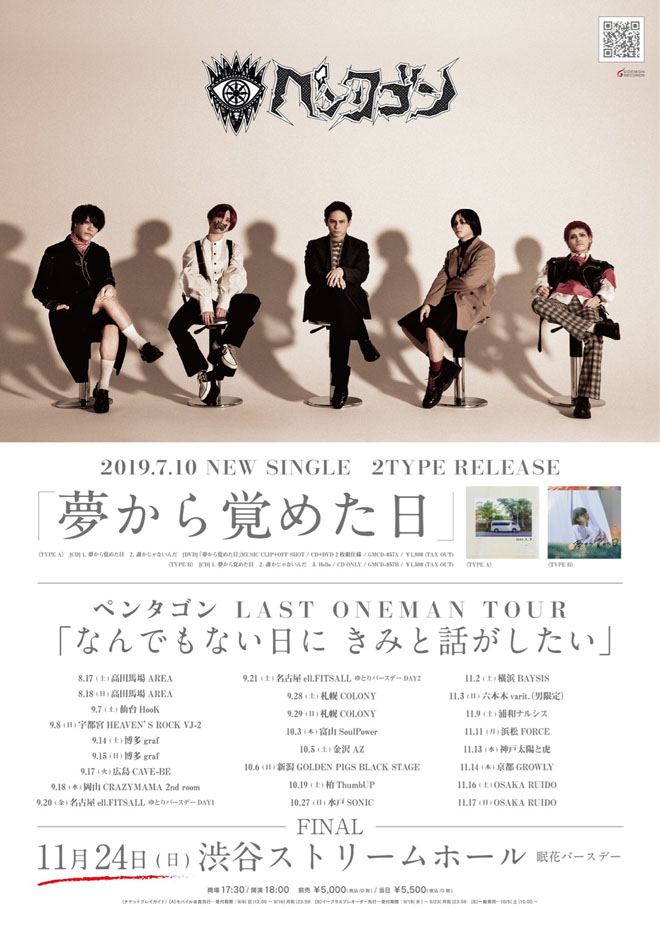 現在発表されている8月17日(土)より開催されるワンマンツアーはタイトルを<ペンタゴンLAST ONEMAN TOUR「なんでもない日に 君と話がしたい」>として行われる。