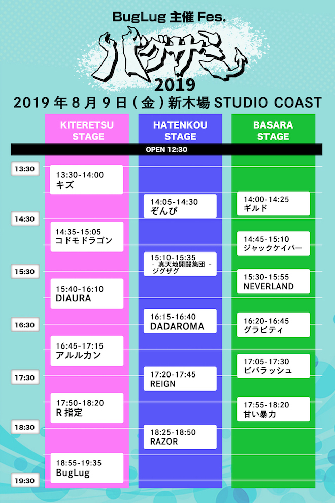 BugLug主催フェス<バグサミ2019>、タイムテーブル発表