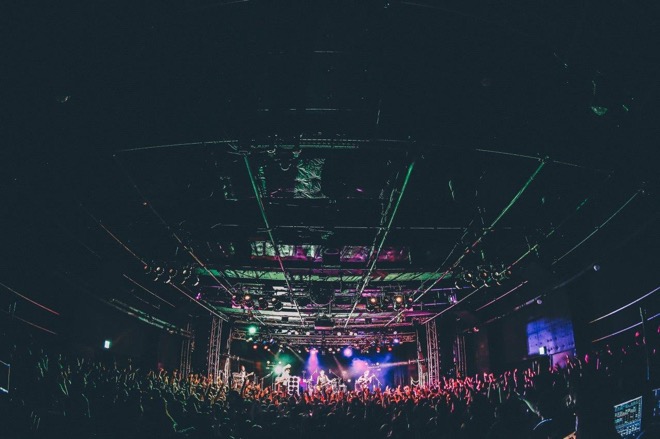 そんな粋な言葉でフロアを煽った後、最新曲「Monolith」を投下。めちゃくちゃカッコいい間奏のベースソロで観客のハートを思いっきりぶち抜き、「いくぞ新宿!」と叫んでサビを歌い出したAKiに向けて腕を掲げるオーディエンスの熱量がひときわ高まる。「Brave New World」で熱量をさらに加速させ、「でっけー声で歌ってください」のコールに応えて「The Inside War」ではシンガロングが広がり、歌詞通りに“君の作るこの世界”をリアル世界に実現。そして「ラスト!暴れちまえー!」という叫び声を合図に、ニューシングル収録メロコアチューン「All Through The Night」ではフロアのあちこちにサークルモッシュが広がるなど、新しい景色を生み出したところで本編が終了した。