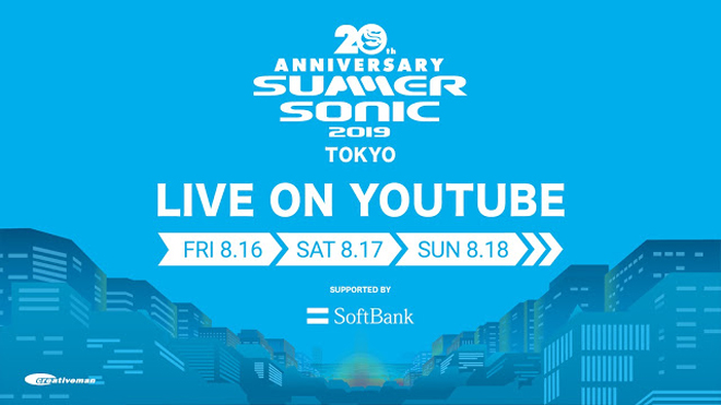 2019年8月16日(金)〜18日(日)に開催される<SUMMER SONIC 2019>の東京公演(@ZOZOマリンスタジアム&幕張メッセ)のアーティストパフォーマンスが、YouTubeで一部配信されることが発表された。
