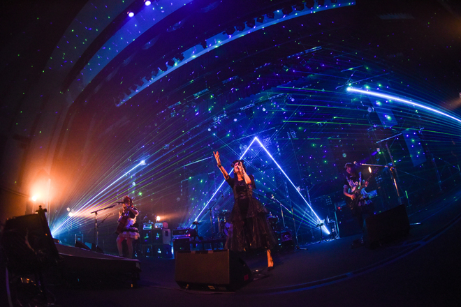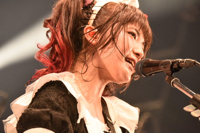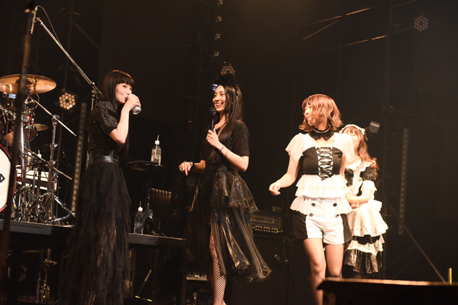宇宙空間をイメージさせる映像とともに奏でられたメロディックなナンバー「Smile」ではスケール感たっぷりの歌と演奏で包みこみ、“アリーナやスタジアムでご主人様・お嬢様と一緒にシンガロングしたい”という想いのもとに生み出された新曲「endless Story」は早くもシンガロングに。彩姫が「みんなが声をとてもくれることがわかったから一緒に歌わない?」と呼びかけ、アカペラから始まった「Daydreming」は大合唱となった。