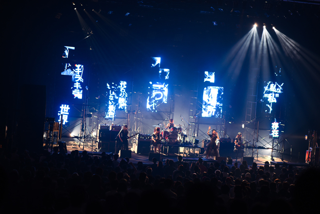 リラックスしたあとは本ツアーから解禁された新曲「wonderland」をLEDスクリーンに歌詞が映し出される演出で披露し、「YOLO」、「Choose me」などライブのキラーチューンを連続投下すると同時にメリハリのある構成で楽しませる。赤のレーザーが飛び交う中、変則的でアーシーかつダイナミックな最新シングル「Bubble」を投下したかと思えば、小鳩がアコギに持ち替えての弾き語りからバンドサウンドへと移行する「TIME」ではステージのモニターに真っ白な鳥かごがあらわれ、 KANAMIが大空を思わせるギターソロを響かせた。