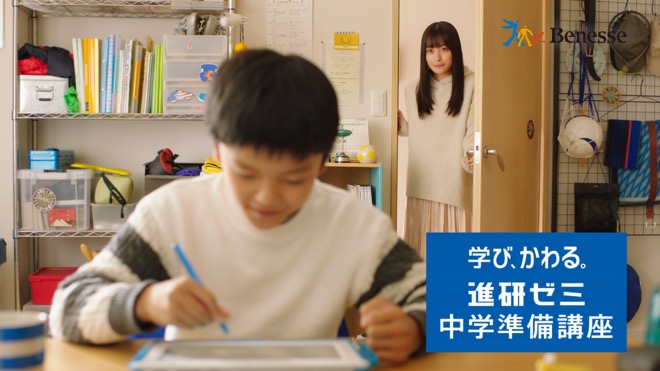 中学準備講座のCM「姉の証言」篇には、橋本環奈が姉役として出演。勉強が好きではなかった小学校6年生の弟が、急に勉強机にかじりつくようになった変化に驚きながら、小学校の総復習と中学の学習内容を先取りができる新・中学準備講座を紹介する。