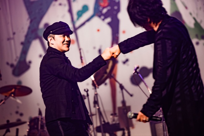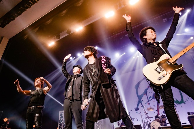 後半の大きな見どころはベーシスト上野博文の登場にあった。森友に呼び込まれステージに現れた上野は、数年前にくも膜下出血で一時は生死をさまよった。励まし合う力が奇跡を起こし、今この光景が見られるのだと実感。その心情を表すかのように「Happiness」を上野もメンバーたちと楽しそうに奏でていた。終盤は「刹那さを消せやしない」「SHAKE IT」などでヒートアップし、「My life is My way」で本編を締めくくった。