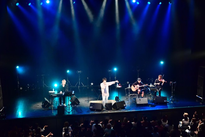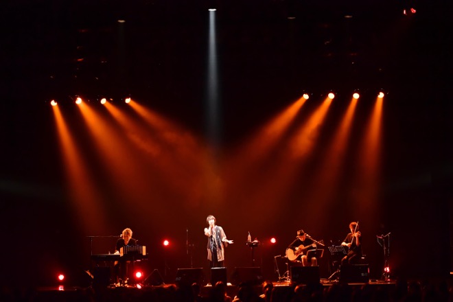 「箸休めNight」のツアー開催は約2年ぶり。7月17日の東京・恵比寿 The Garden Hallを皮切りに5都市全6公演(2部制)を回り、初日となった東京公演は“女性Vocalist Cover”、ファイナルとなった東京公演は“男性Vocalist Cover”といった2つのテーマで行われた。この夜のマイナビBLITZ AKASAKA公演は“男性Vocalist Cover”。ギター、キーボード、ヴァイオリンによるアコースティック編成のシンプルなサウンドの中、珠玉のラブソングの数々を温かみのあるヴォーカルで歌い上げ、ヴォーカリスト・マオとしての真骨頂を見せた。