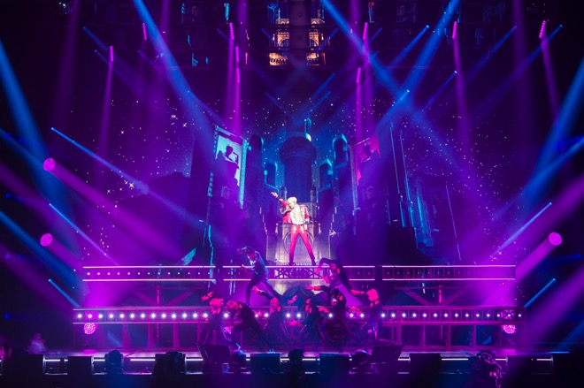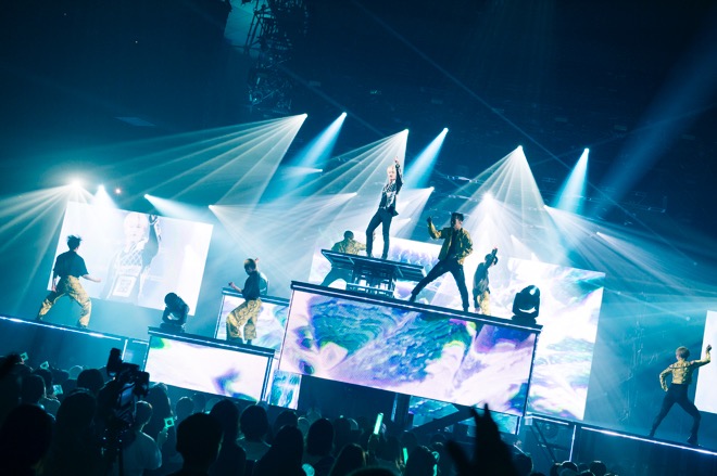 そんな冒頭2曲でも感じる、2年前とは格段にスケールアップした舞台装置や照明演出。中でも会場が熱狂の渦と化したのは、メインステージからセンターステージへと移動するムービングステージだ。「One By One」ではスタンド席のファンにも急接近しながら、動くステージ上でも華麗なダンスを踊り続けるテミン。真新しさと、ファンにはうれしい“距離感の近さ”を十分味わえる印象的なシーンとなっていた。