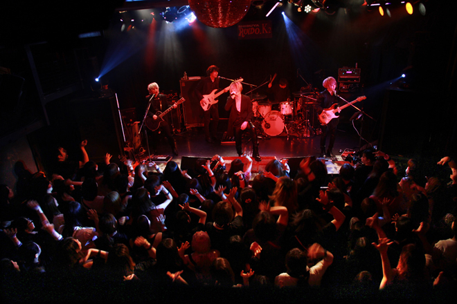 極東ロマンスは、2018年12月に活動終了となったバンド・Anli PollicinoのShindy(Vo.)、琢磨(G)、Yo-1(G)に、異なるジャンルで活躍してきた柳山ユウト(B)、Tetsufumi(Dr)が加わった5人組ロックバンド。この日は彼らが所属する事務所のファンクラブ「CLUB EUCLID」の会員限定のライブとして開催され、チケットは完売。バンドのお披露目ライブということで、会場には始動の瞬間を待ちわびる多くのファンが集まっていた。