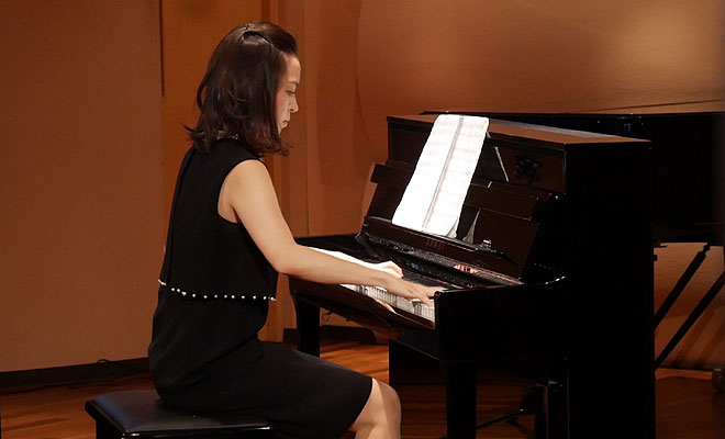 最後はデジタルピアノならではの機能について。「音量の調整が効くことや、ヘッドホンをつけての練習が可能なこと。また、演奏したものを録音できるという機能は、とても便利だなと思いました」とUSBメモリーへの演奏録音機能を評価。ピアノの練習では「第三者の目がとても大事」という小池さん。「アコースティックピアノで練習している時も携帯電話で録音をして、練習を自分で客観視するということをするので、その機能がすでにピアノに付いてるっていうのは、とても便利だなと感じました。」