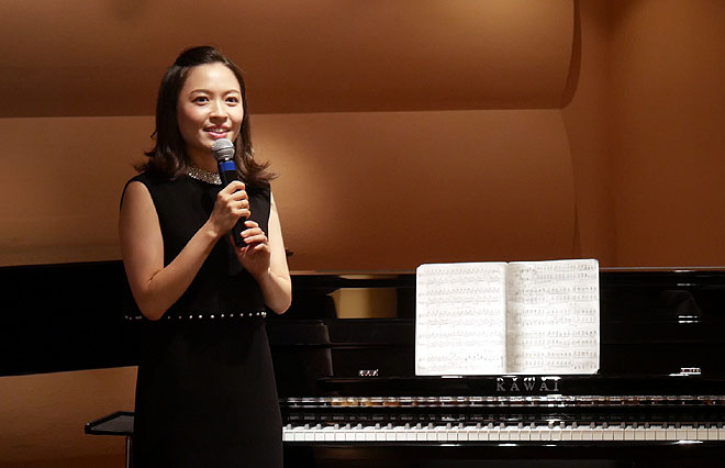 ▲演奏を披露したのは、「NOVUS NV5」のプロモーションムービーにも登場しているピアニストの小池美奈さん。桐朋学園大学音楽学部卒業後ニューヨークへ渡米、マネス音楽院で修士課程修了。2011年11月にデビュー・アルバム「Daisy」をリリース。国内外の数々のコンクールで受賞、2016年にはカーネギーホールで演奏。2018年春、大阪フィルハーモニー交響楽団との共演を果たしている。